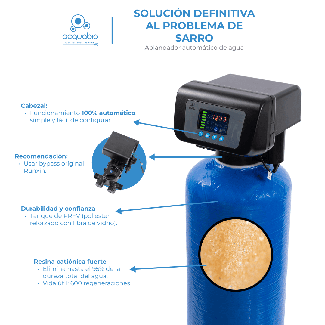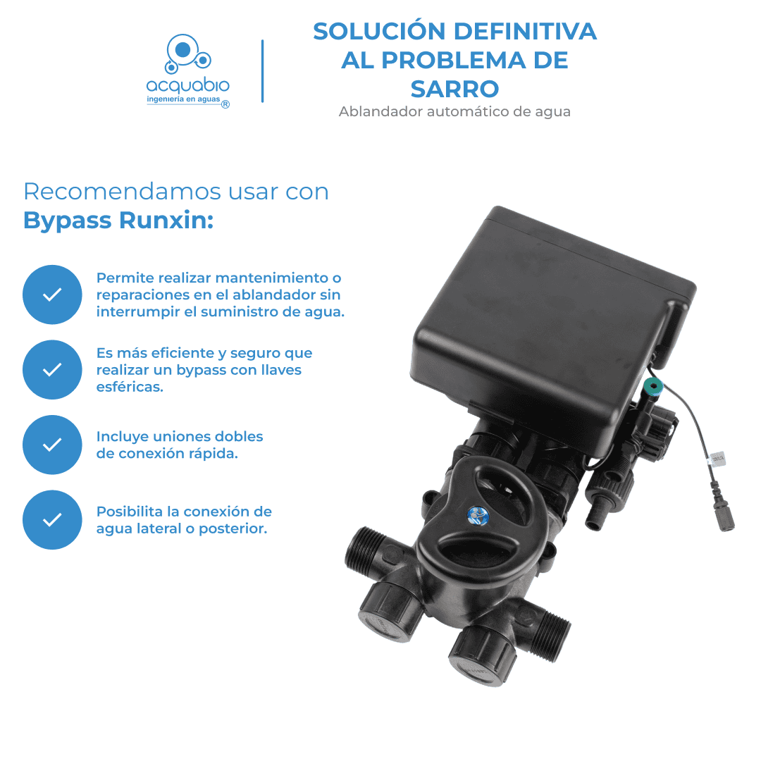 – Prueba hidráulica incluida – Evita el pasaje de agua dura cuando regenera